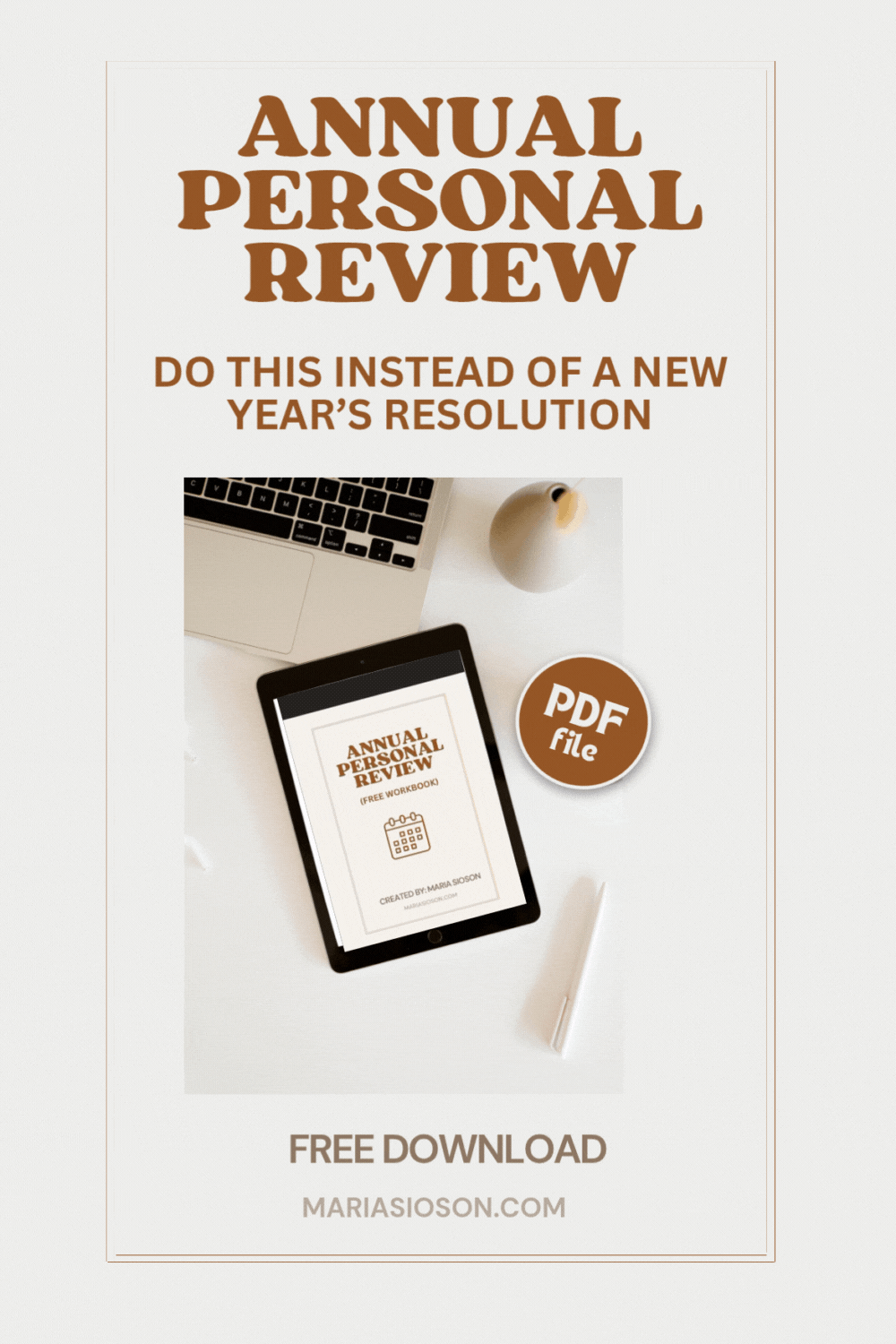 An annual personal review is an intentional reflection you do towards the end of the year to pause and review where you are in life. You can create personal, professional, financial, and emotional goals… like a yearly check-in with yourself. It’s not about a “new you” but gaining clarity and direction on the next chapter of your life.