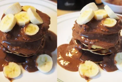 Banana Protein Pancakes with Almond Chocolate Protein Sauce Recipe (Step by Step Pics)